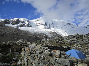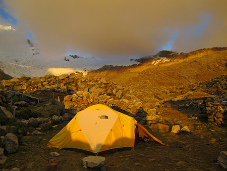 We will walk along the shore of the Legiacocha lake during our journey to the mountain, before hiking up to the High Camp where we will stay the night. Approx. 4 hours.