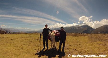 From Huaraz we will drive to Cochapampa where our Donkey Driver will be waiting for us. From there we will start our hike, going through a forest of Quenuales trees until Base Camp. Approx. 4 hours.